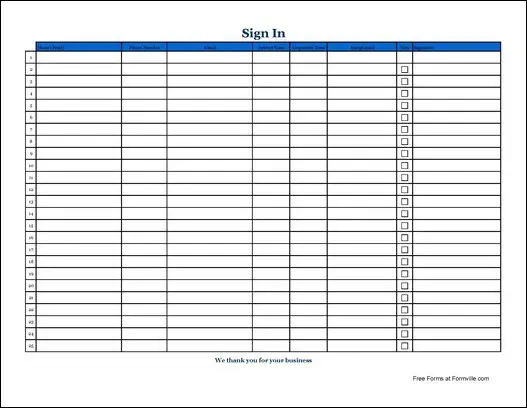 Formville's free "Detailed Volunteer Sign In Sheet with Signature (Wide)" form is associated with the following keywords: volunteer sign-in, sign-in sheet.