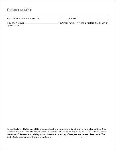 This form includes a contract template with space for the exact terms of your agreement. At the bottom are places for contact information and signature for each party, as well as the notary's acknowledgement and signature for each party. This version is designed for an agreement between an individual acting as a representative of a corporation, LLC, or other organization and a private individual. This form is in full-page portrait format.
