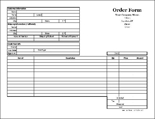 Form Description: Orders from your customers are the lifeblood of your business. Make ordering easy for both of you with our detailed order form. Walk-in, online, or by mail, track the orders you receive and fill. The detailed order form includes the date, customer contact information, shipping address and method, billing with a place for credit card info, and an itemized list of goods ordered with cost, tax, shipping, and the grand total. The Excel version computes the item cost, tax amount, and total automatically. This form is formatted for easy duplication for your convenience. This form is in full-page landscape format.